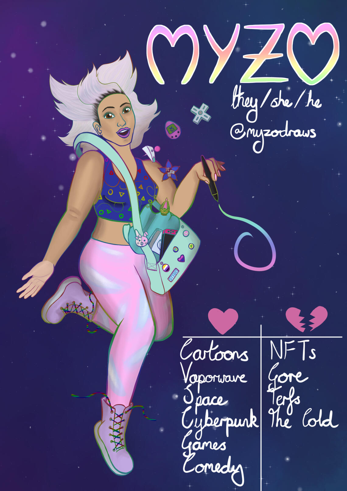 Hello! My name is Myzo and I'm a UK-based artist who enjoys several mediums! I'm currently focusing on digital art but I also like to paint and draw using markers.